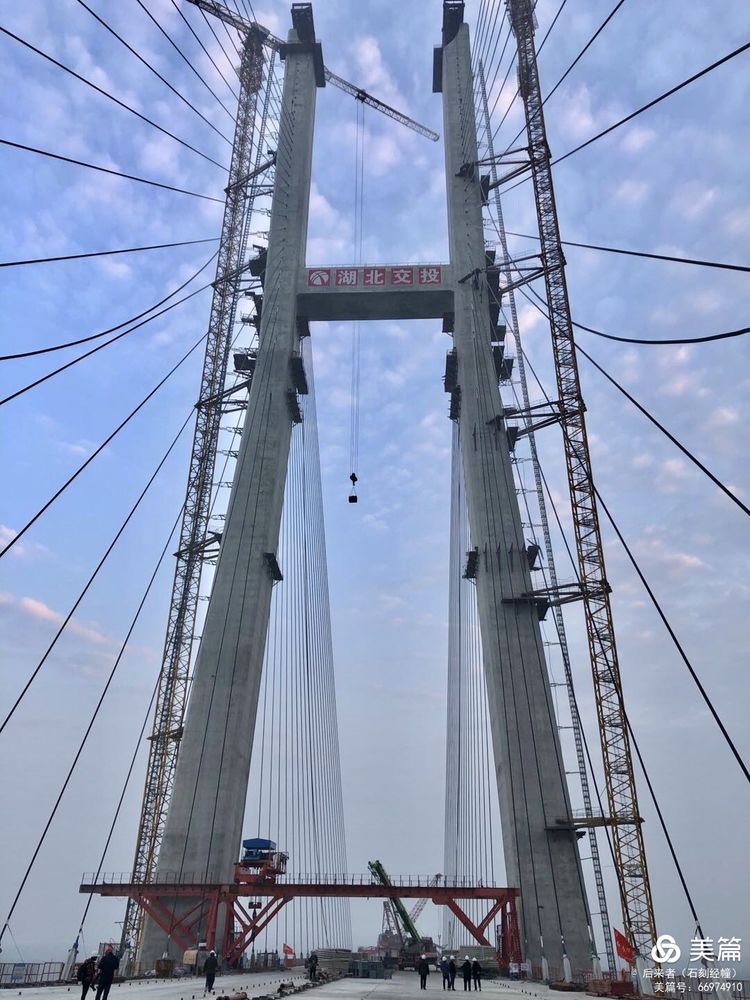湖北省赤壁長(zhǎng)江公路大橋機(jī)電工程施工項(xiàng)目起于洪湖市烏林鎮(zhèn),止于赤壁市赤壁鎮(zhèn),全長(zhǎng)11.2公里,其中長(zhǎng)江大橋全長(zhǎng)3.35公里,全線采用雙向六車道高速公路標(biāo)準(zhǔn)建設(shè),設(shè)計(jì)速度每小時(shí)100公里,批復(fù)概算32.5億元,批復(fù)工期48個(gè)月。大橋建成后,從赤壁過(guò)江到洪湖僅需5分鐘。項(xiàng)目創(chuàng)新設(shè)計(jì)方式,大橋主塔采用H形設(shè)計(jì),北主塔高217.33米,南主塔高223米;主跨720米打破了鋼混結(jié)合及鋼混疊合梁斜拉橋主橋最大跨徑600米的世界紀(jì)錄,成為新的世界第一。2021年6月3日已經(jīng)通過(guò)交工驗(yàn)收,通橋指日可待。