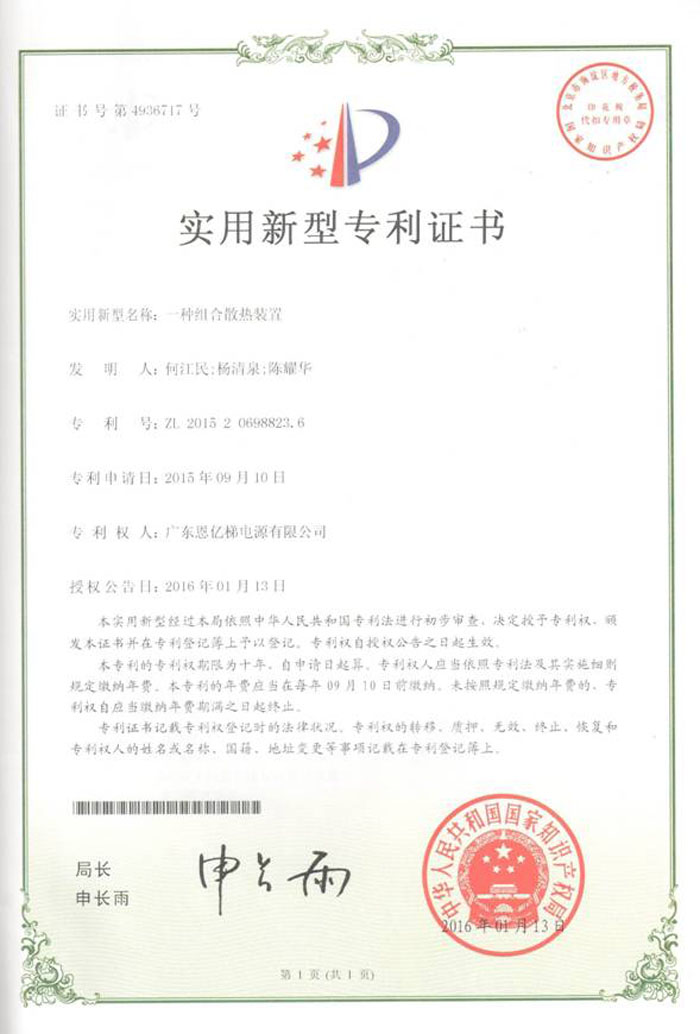 專利證書(一種組合散熱裝置)
