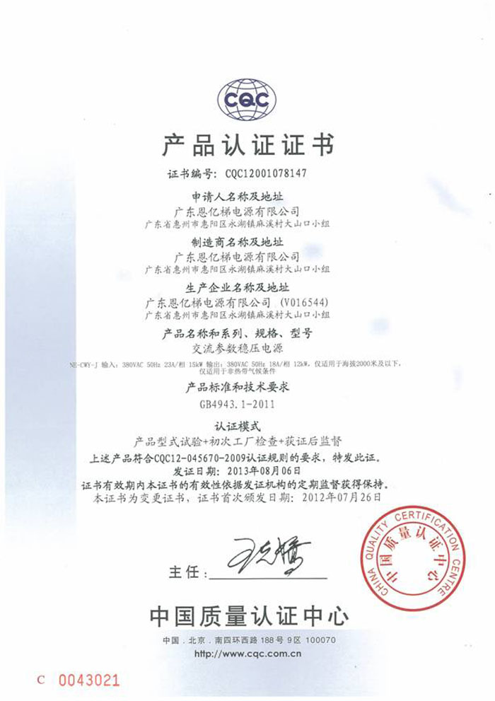 中國(guó)國(guó)家強(qiáng)制性產(chǎn)品認(rèn)證(交流參數(shù)穩(wěn)壓電源)
